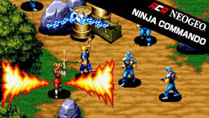 “NINJA COMMANDO” is an action game released by SNK in 1992. Fight to protect history from death merchants planning to bring chaos to the world. Shoot, use Ninja Tricks and Death Blows, and accumulate scrolls to perform Transformations for a variety of attacks. Two-player simultaneous play is also available.