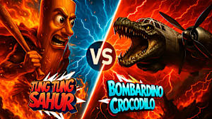 BOMBARDINO CROCODILO vs TUNG TUNG SAHUR is a chaotic meme game where you play as BOMBARDINO CROCODILO and try to survive in a world full of absurd danger.